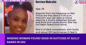Kerrian Malcolm Death – A wave of grief and disbelief has swept through the community of Savanna-la-Mar, Jamaica, following the tragic discovery of 29-year-old Kerrian Malcolm, whose lifeless body was found inside a suitcase on Saturday, October 4, 2025. The gruesome discovery was made in a gully located in the Gully Banks area, sending shockwaves across the normally peaceful town.
